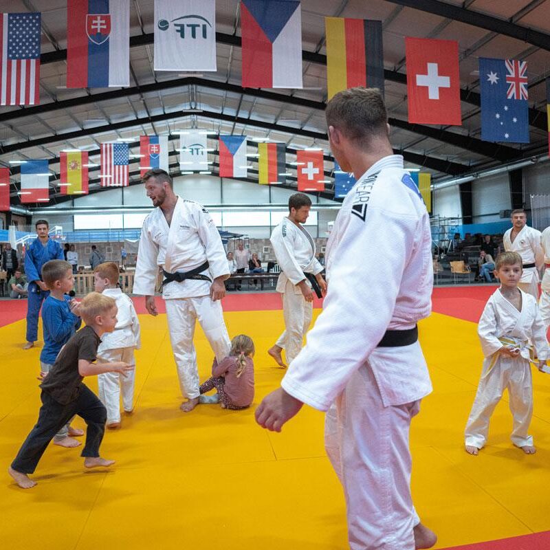 Moderní multifunkční prostor pro tréninky, zápasy i relaxaci. Tatami, basketbal, posilovna a více – vše pod jednou střechou.